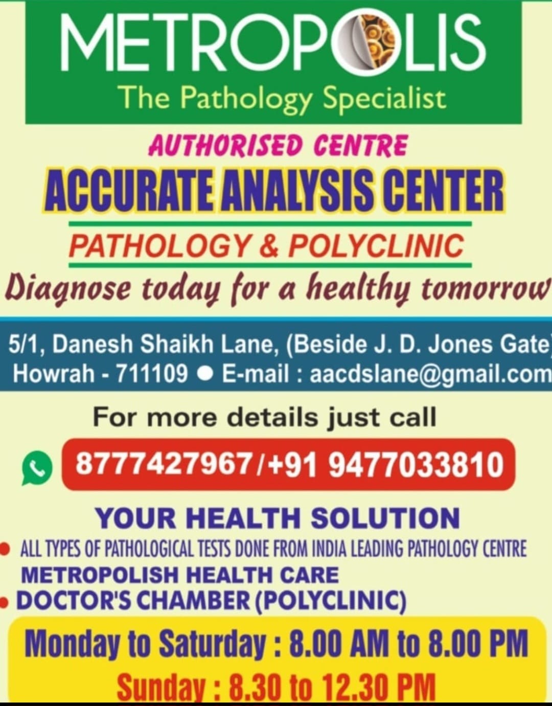 Pathology Centre, Diagnosis Centre, Polyclinic, Accurate Analysis Center